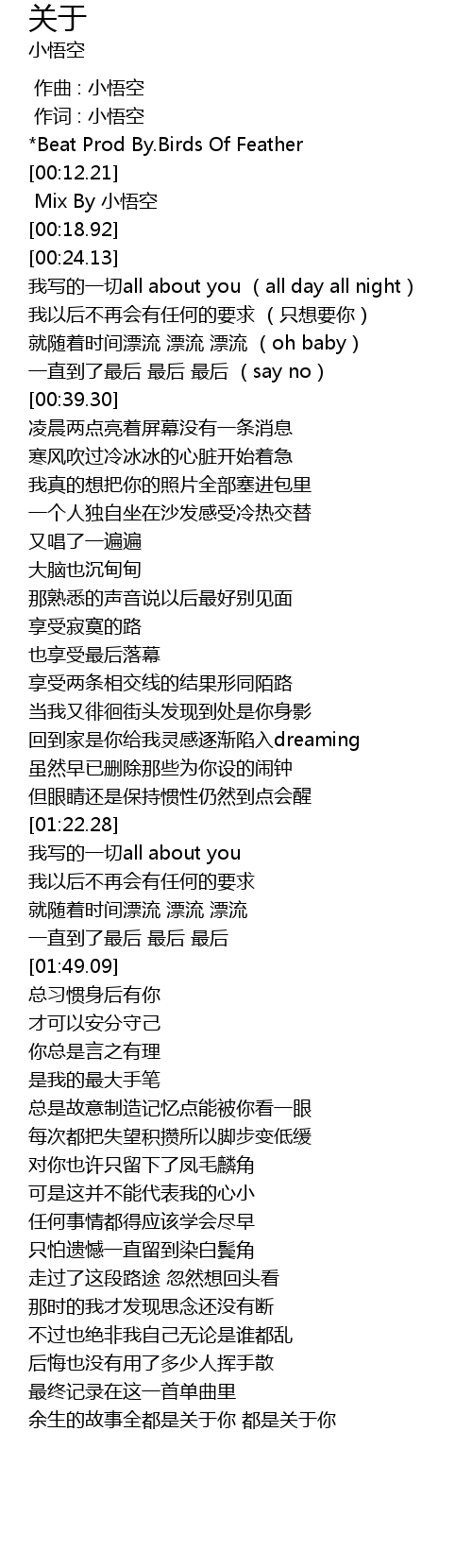 | [00:01.000] | 作词 : 小悟空 |