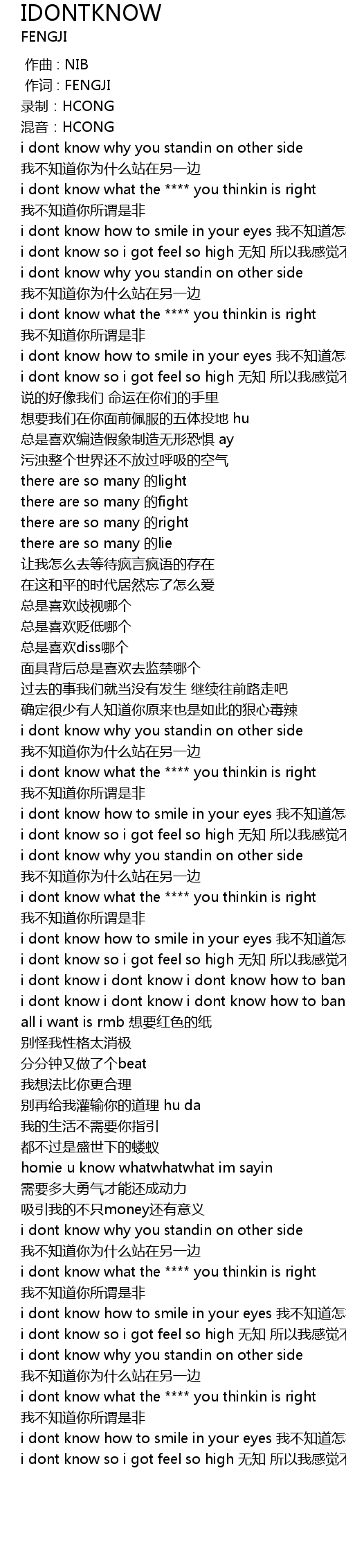 | [02:01.000] | i dont know what the you thinkin is right wo bu zhi dao ni suo wei shi fei |
