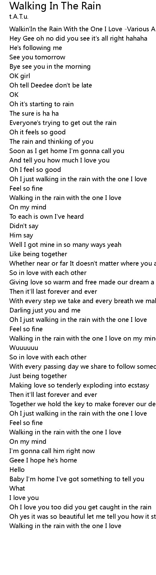 Oh I just walking in the rain with the one I love |