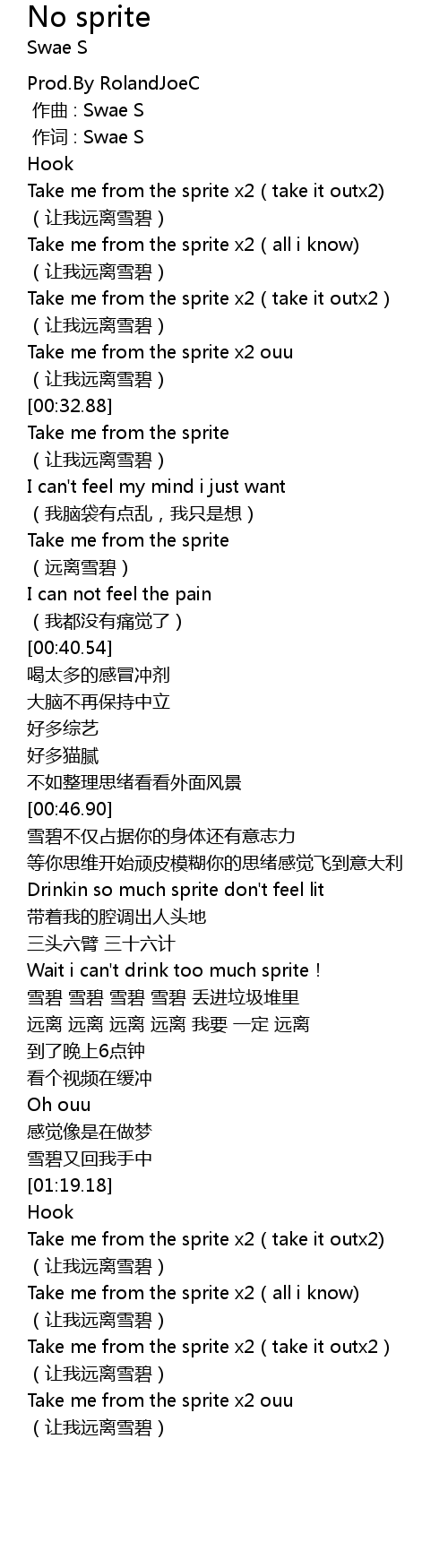 | [01:19.79] | Take me from the sprite x2(take it outx2) |