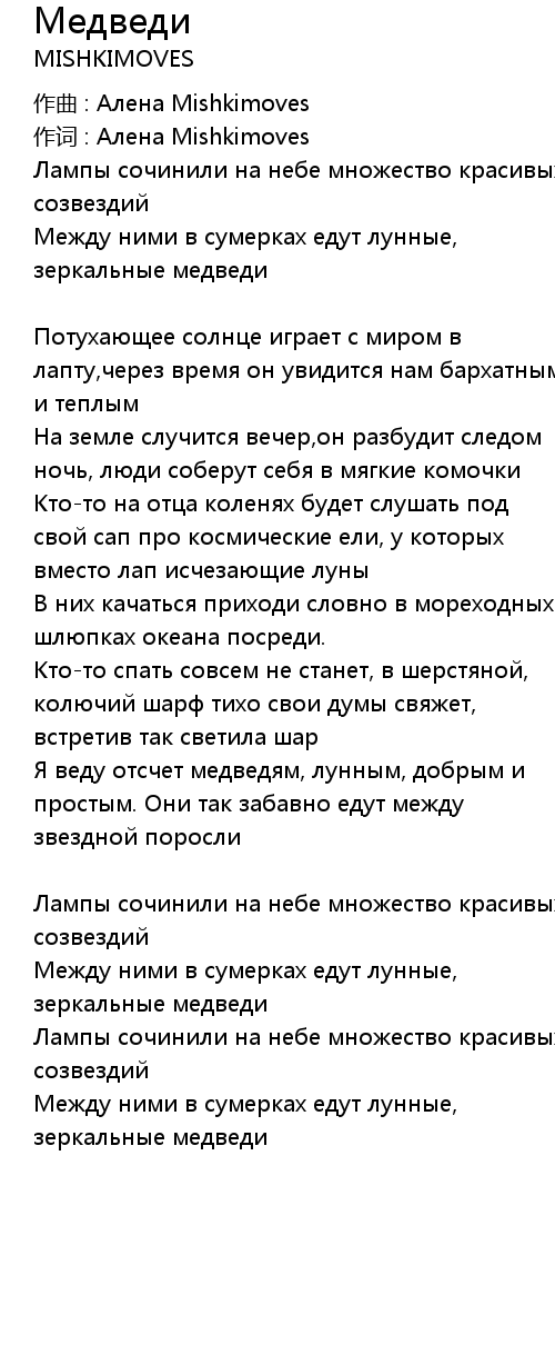 Я веду отсчет медведям, лунным, добрым и простым. Они так забавно едут между звездной поросли