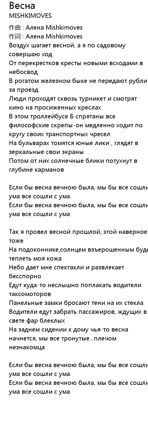 作词 : Алена Mishkimoves |