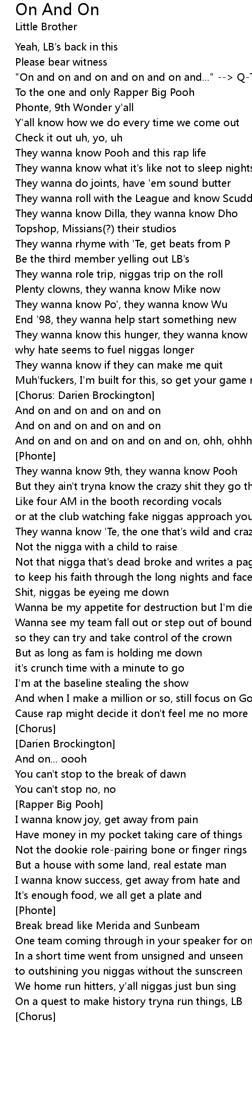 "On and on and on and on and on and..." --> Q-Tip |