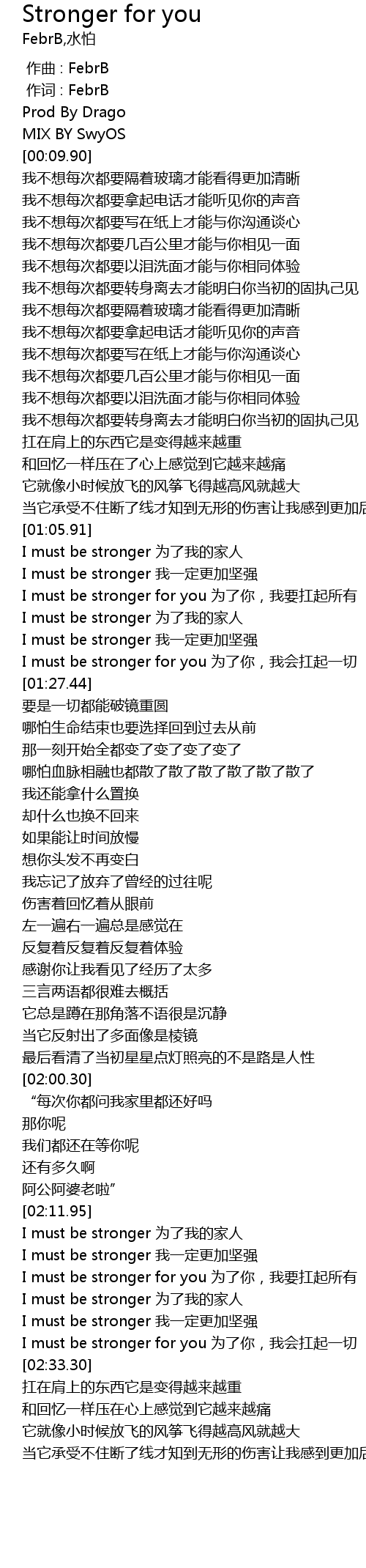 | [02:22.61] | I must be stronger 为了我的家人 |