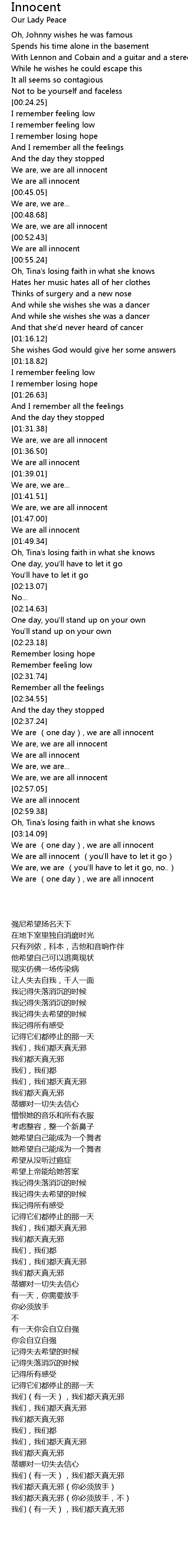 | [00:53.93] | We are all innocent |