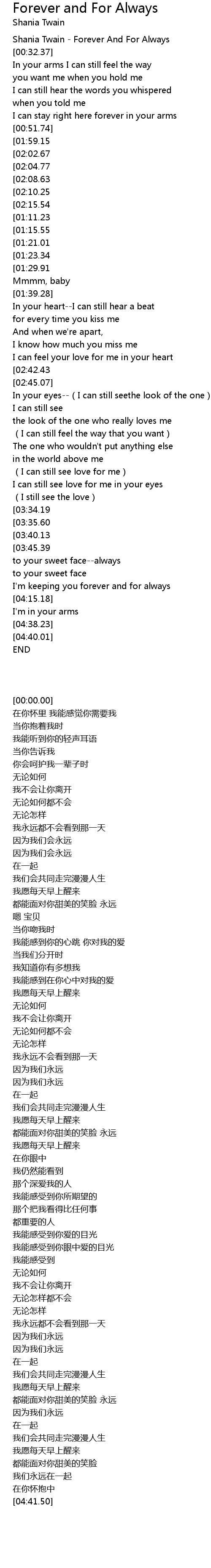 | [00:00.00] | Shania Twain Forever And For Always |