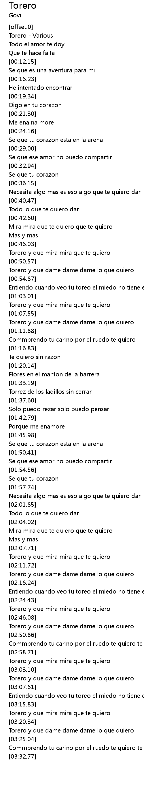 [03:00.51] Torero y que mira mira que te quiero