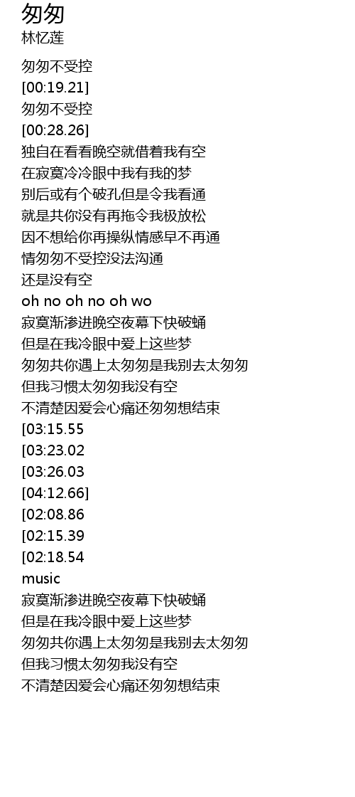| [01:01.58] | 情匆匆不受控没法沟通 |