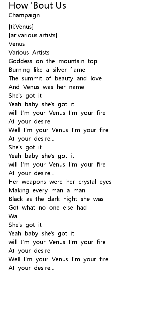 Well I'm your Venus I'm your fire |