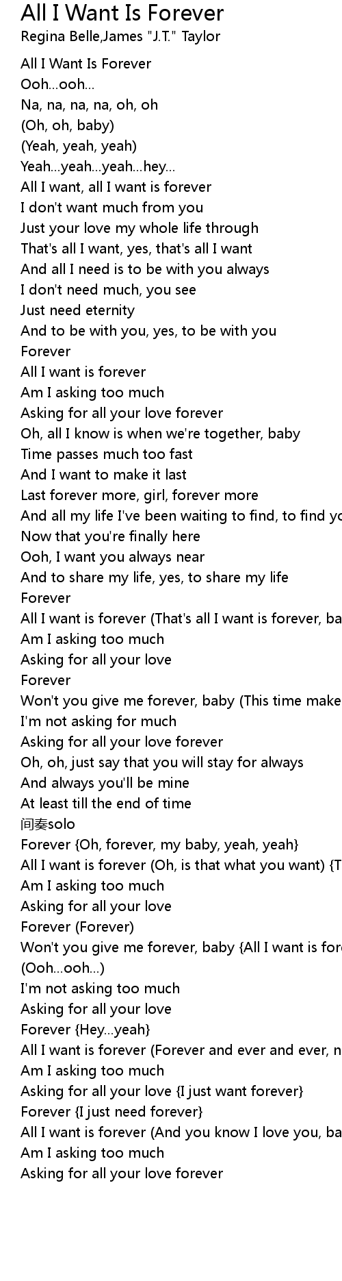 | [03:22.46] | All I want is forever Oh, is that what you want That' s what I Want |