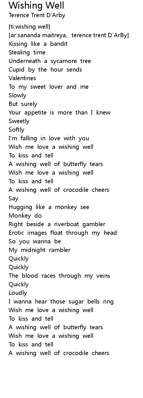 | [01:58.951] | Wish me love a wishing well |