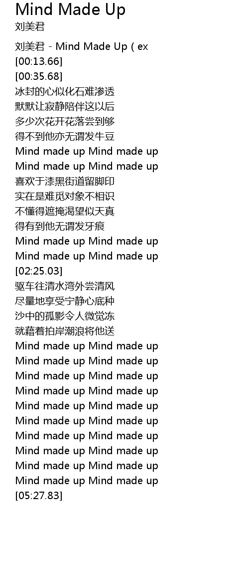| [05:05.02] | Mind made up Mind made up |
