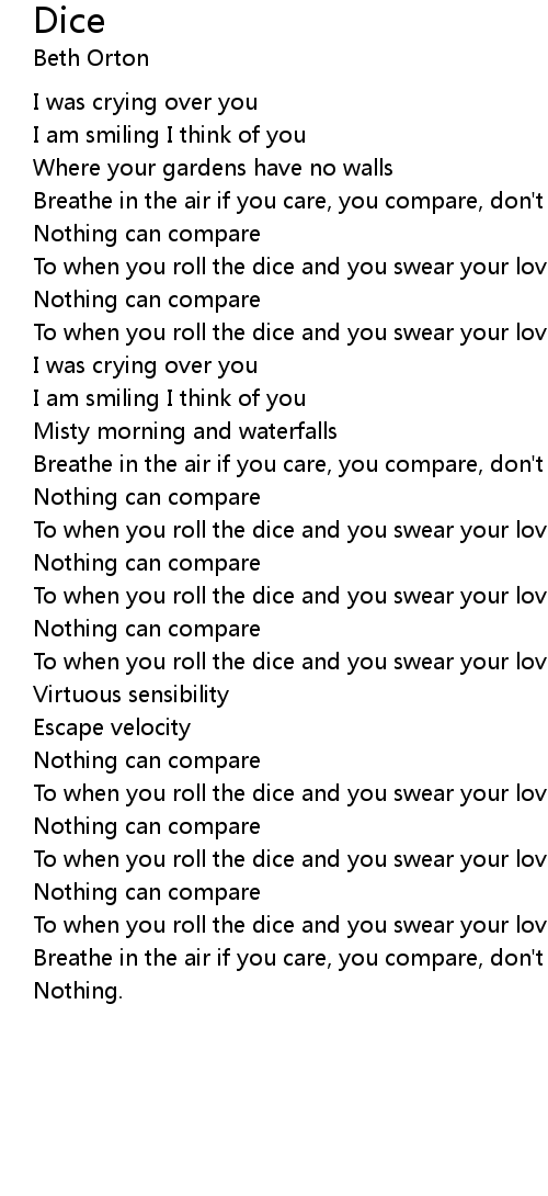 To when you roll the dice and you swear your love's for me |