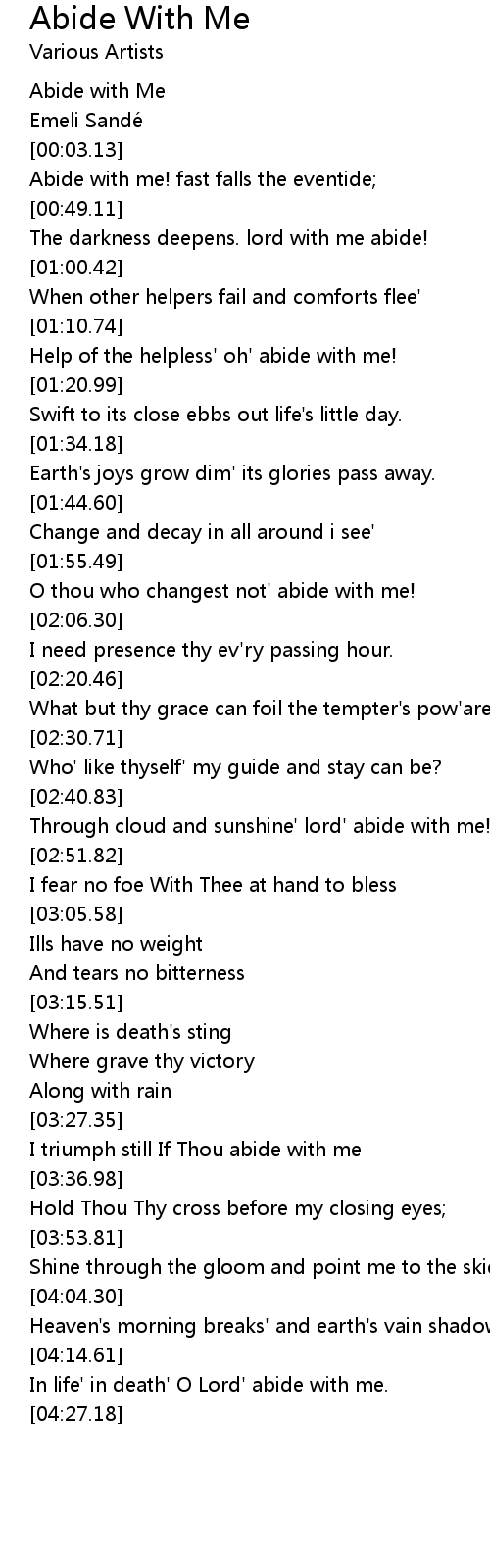 | [04:15.74] | In life' in death' O Lord' abide with me. |