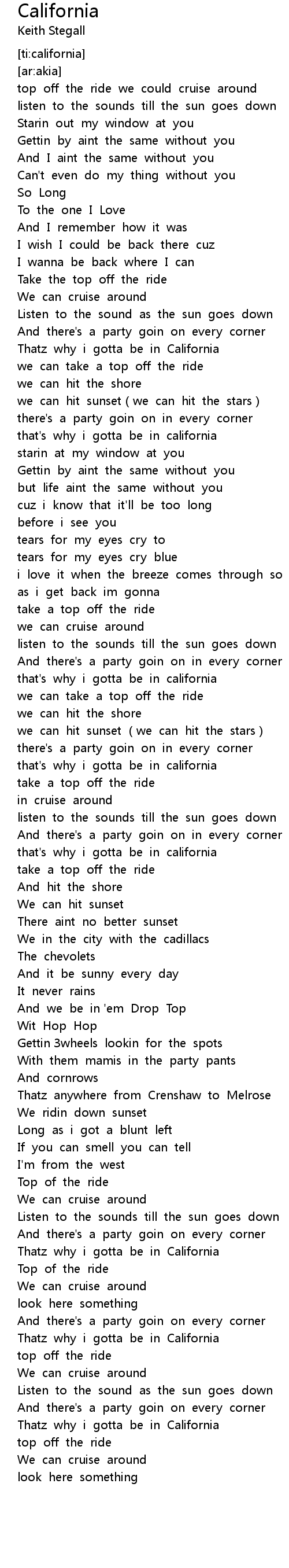 | [00:59.869] | that' s why i gotta be in california |