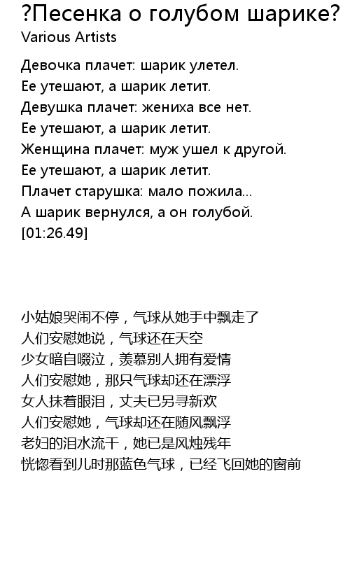 | [01:14.94] | А шарик вернулся, а он голубой. |