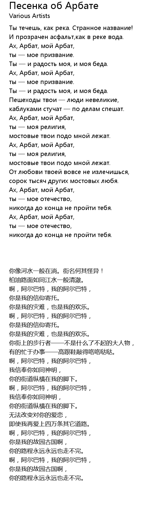 | [0:18] | 啊,阿尔巴特,我的阿尔巴特, |