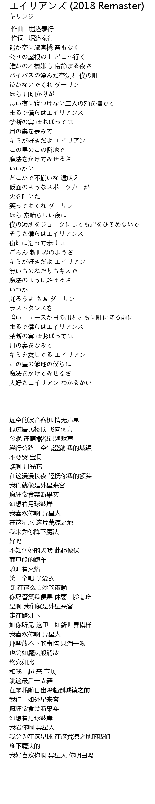 | 歌曲 | エイリアンズ (2018 Remaster) |