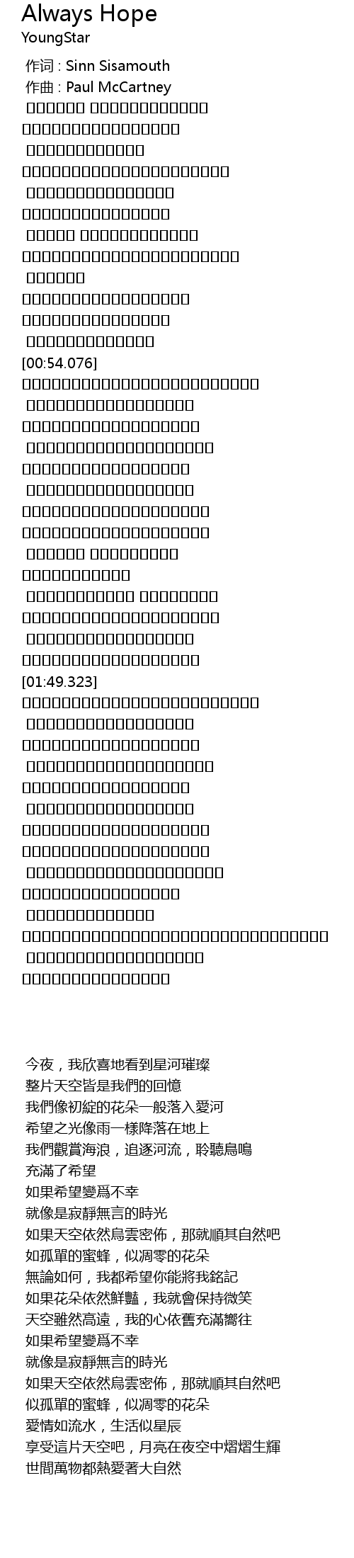 | [01:58.456] | 如果天空依然烏雲密佈,那就順其自然吧 |
