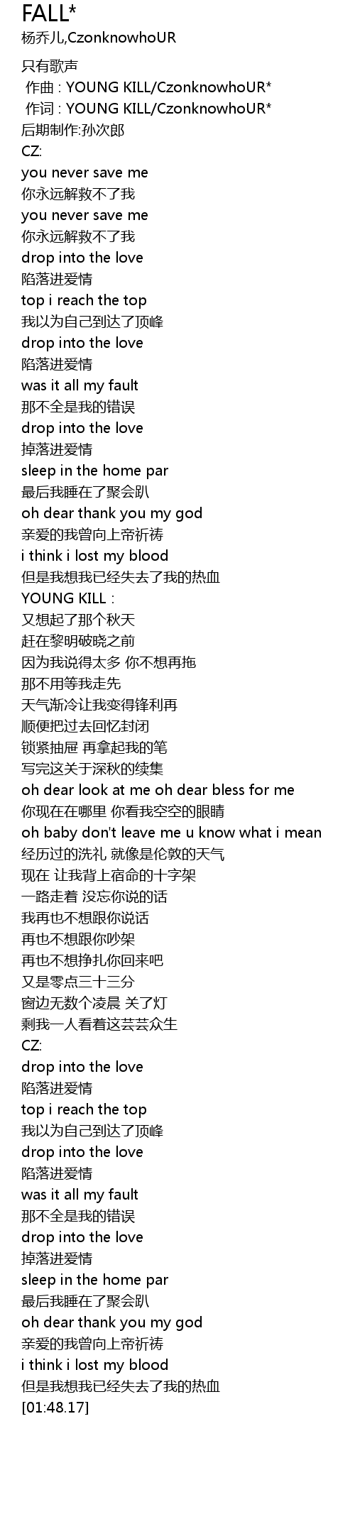 | [00:00.000] | zuò qǔ : YOUNG KILL CzonknowhoUR |