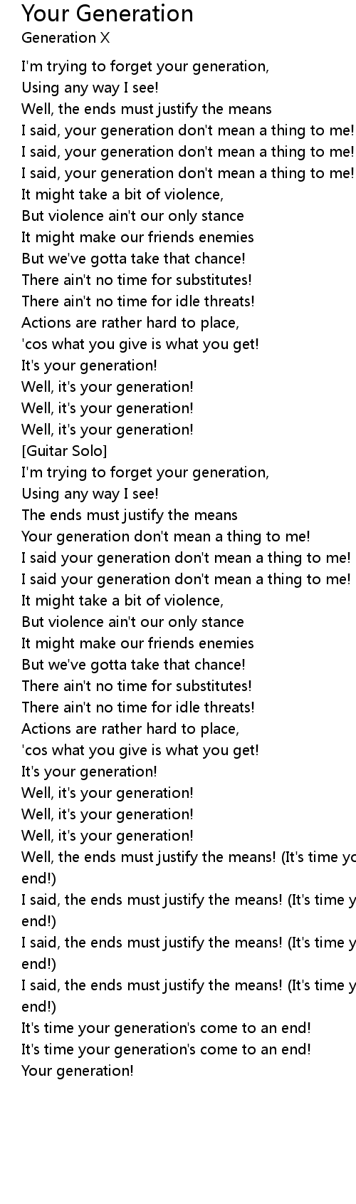 Well, the ends must justify the means! (It's time your generation's come to an end!)