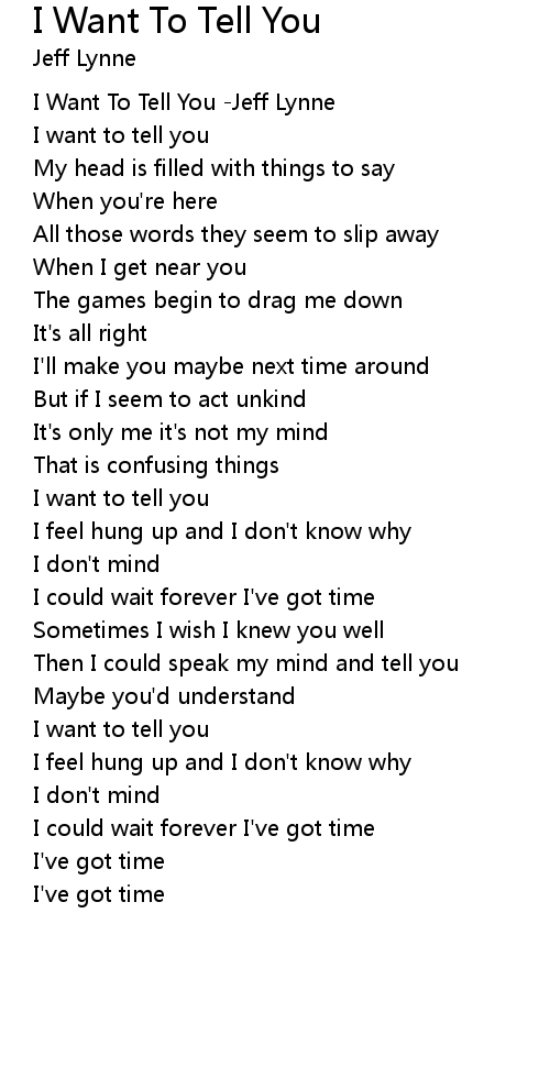 I Want To Tell You -Jeff Lynne |