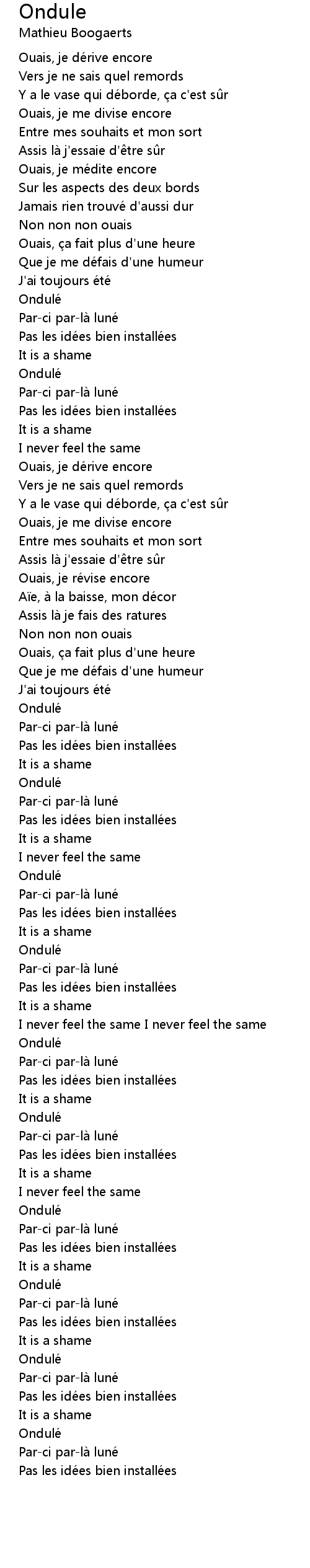 | [00:14] | Vers je ne sais quel remords |