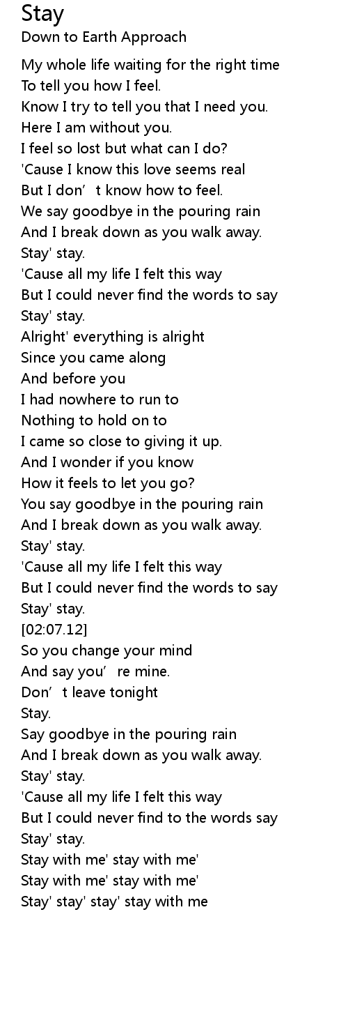 | [03:19.66] | Stay' stay' stay' stay with me |