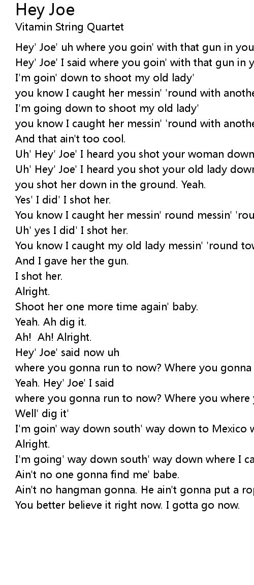 [00:09.68] Hey' Joe' uh where you goin' with that gun in your hand?