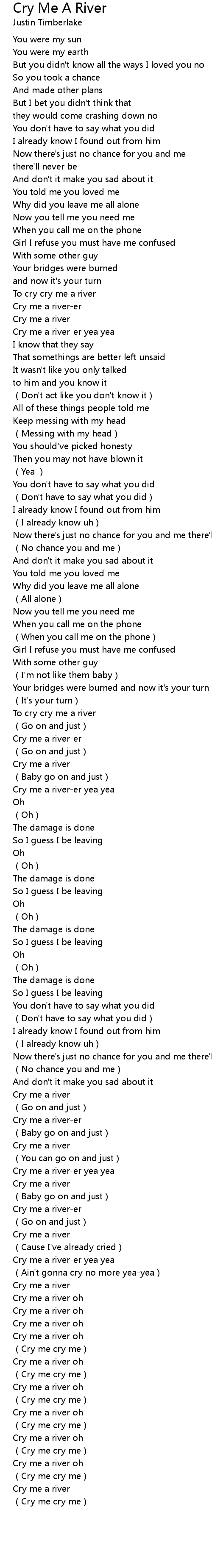 | [04:28.69] | Cry me a river oh |