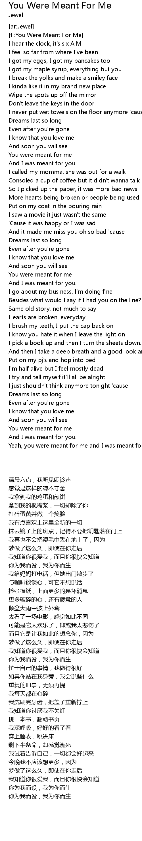 [ti:You Were Meant For Me] |