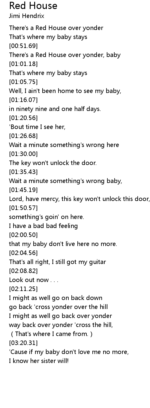 | [00:58.31] | There' s a Red House over yonder, baby |
