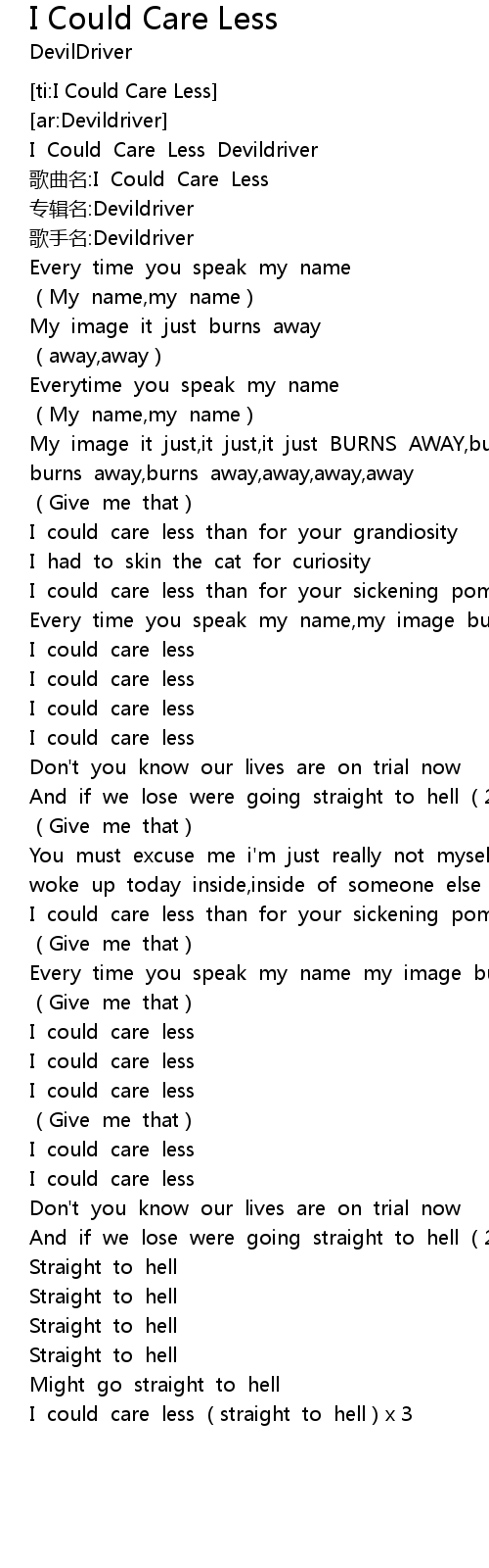 | [00:00.38]I Could Care Less Devildriver] | |