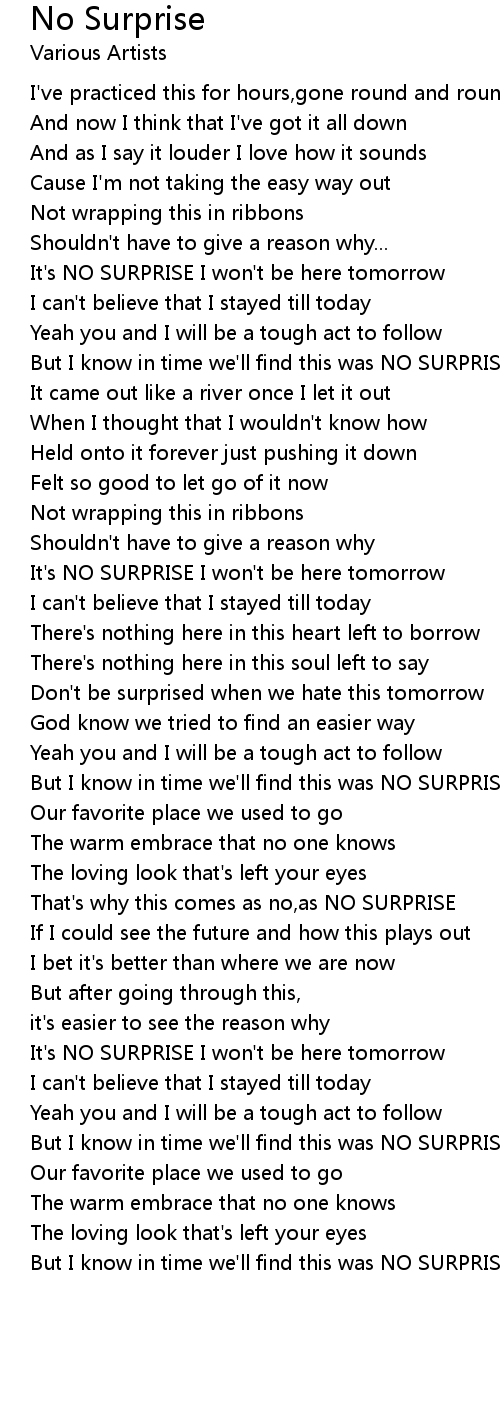[02:14.67] But I know in time we'll find this was NO SURPRISE