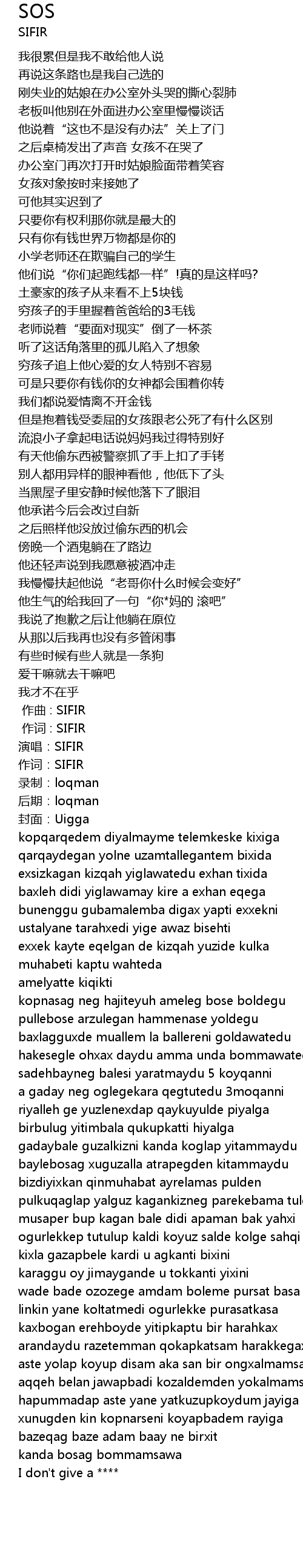 | [00:00.679] | 作词 : SIFIR |