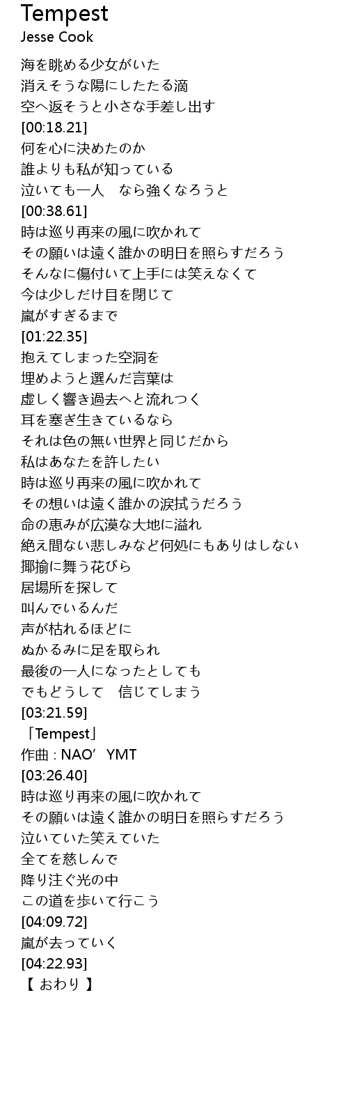 | [00:40.58] | 時は巡り再来の風に吹かれて |