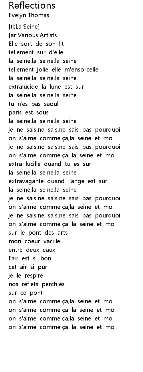 | [02:18.70] | on s' aime comme a, la seine et moi |
