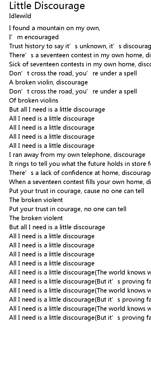 | But all I need is a little discourage | |