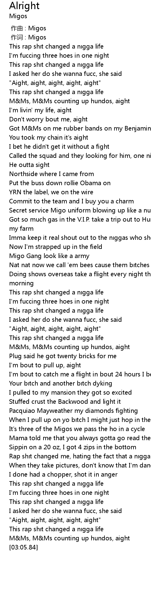 | [01:46.69] | " Aight, aight, aight, aight, aight" |
