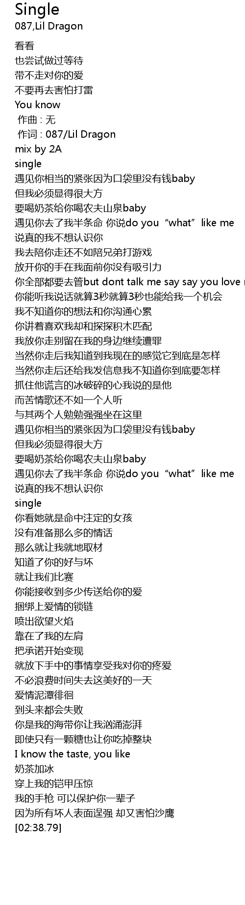 | [00:00.334] | 作词 : 087/Lil Dragon |