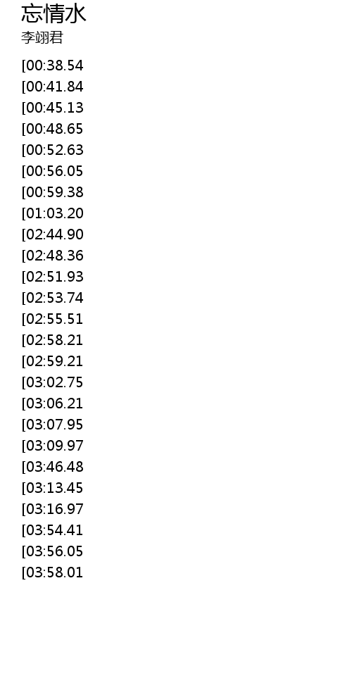 | [03:47.29][03:13.45][01:35.40] | 给我一杯忘情水 |