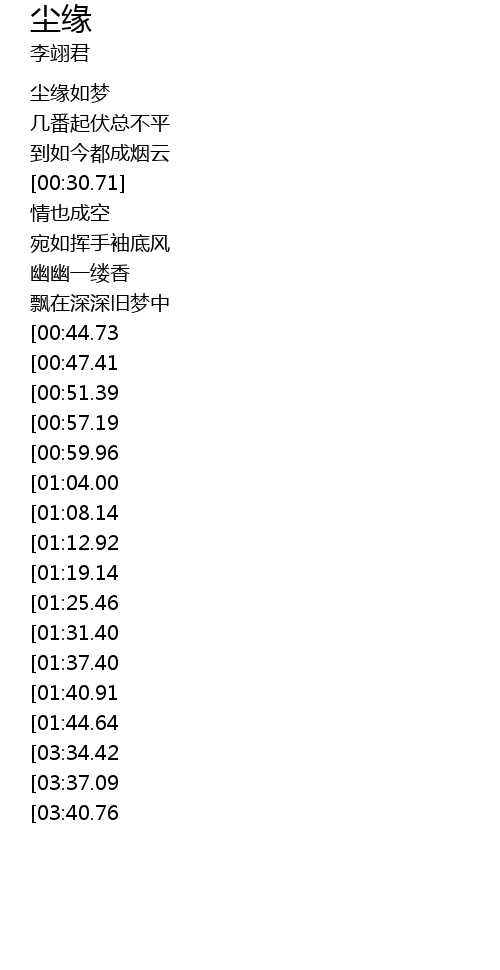 | [03:47.32][03:34.42][01:50.74] | 一城风絮 |