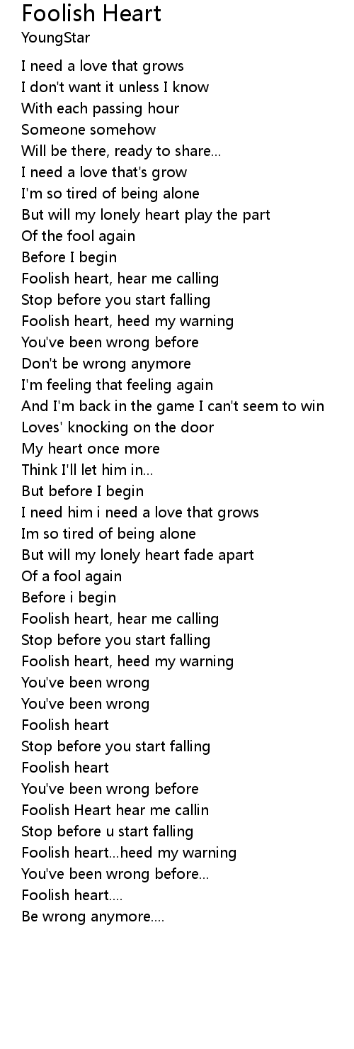Foolish Heart hear me callin |