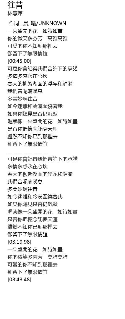 | [02:58.23] | 喔就像一朵盛開的花 如詩如畫 |