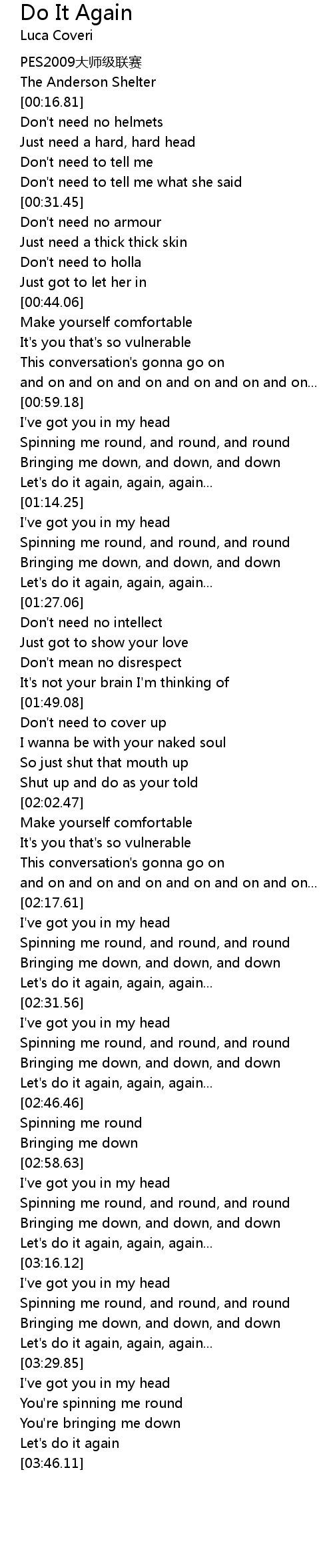 | [02:29.49] | Let's do it again, again, again... |