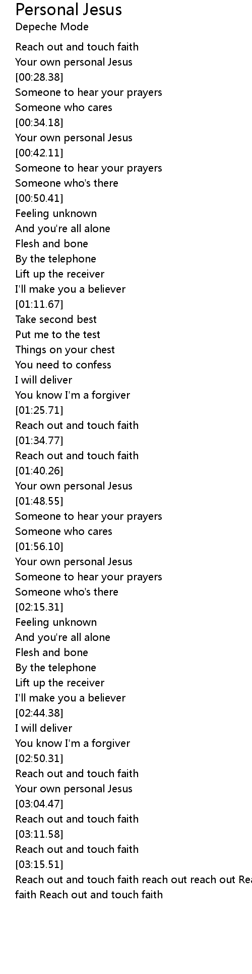 [03:20.78] Reach out and touch faith reach out reach out Reach out and touch faith Reach out and touch faith