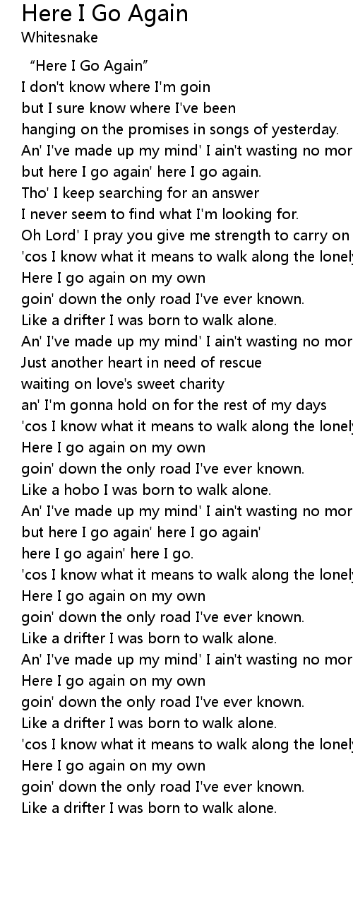 | [04:21.96] | Like a drifter I was born to walk alone. |
