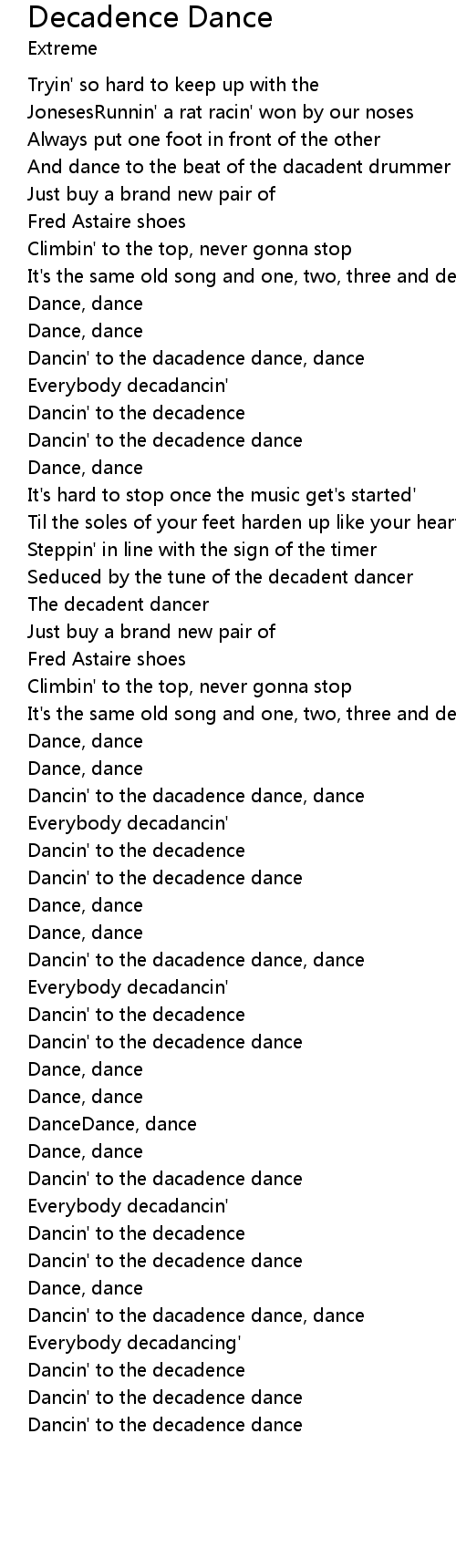 Dancin' to the decadence dance |