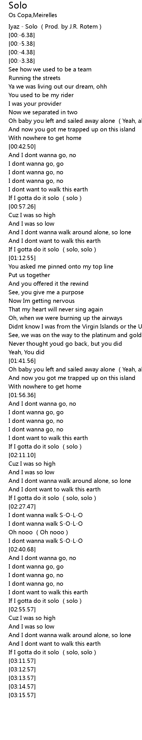 | [03:06.57] | If I gotta do it solo (solo, solo) |