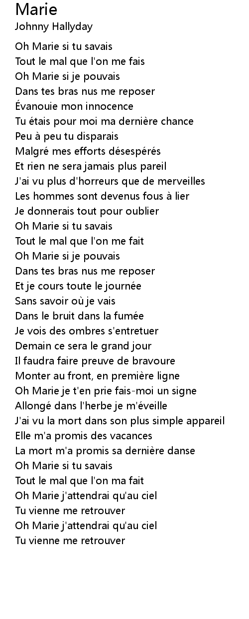 | Oh Marie je t'en prie fais-moi un signe | |